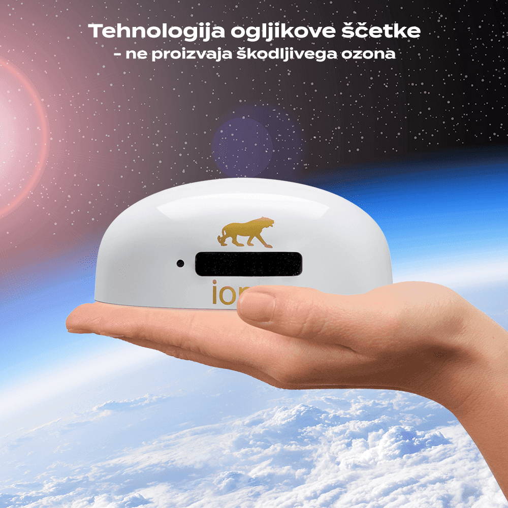 IONIZATOR IONEX JE EDINI UNIČEVALEC VIRUSOV S TEHNOLOGIJO OGLJIKOVE ŠČETKE BREZ ŠKODLJIVEGA OZONA IN Z NAJVEČJO EMISIJO NEGATIVNIH IONOV.