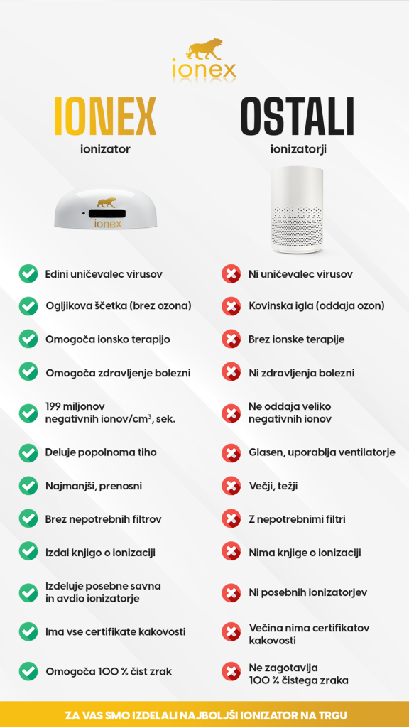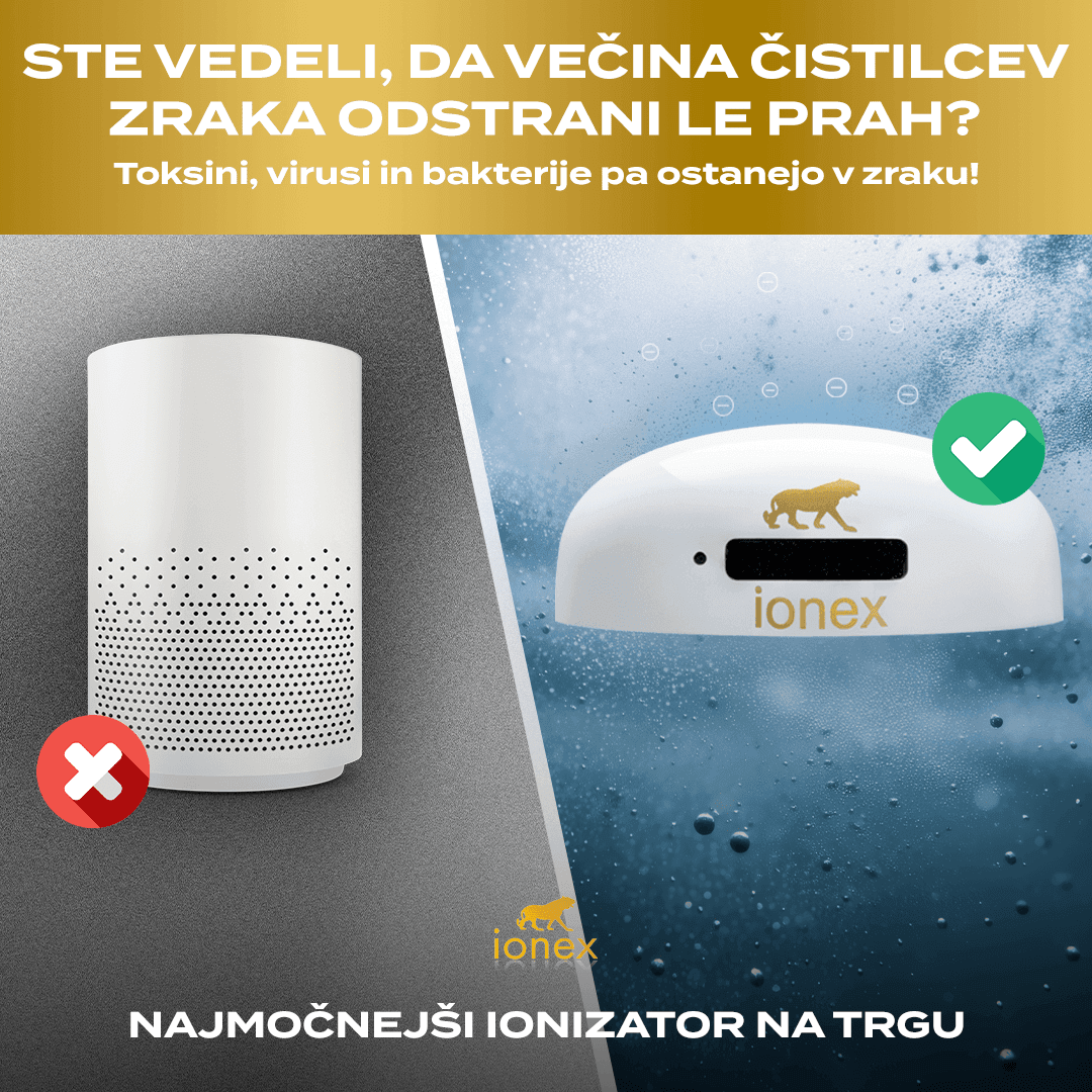 IONIZATOR IONEX 100% OČISTI ZRAK POD-MIKROMETRSKIH DELCEV 0,01 MIKROMETRA