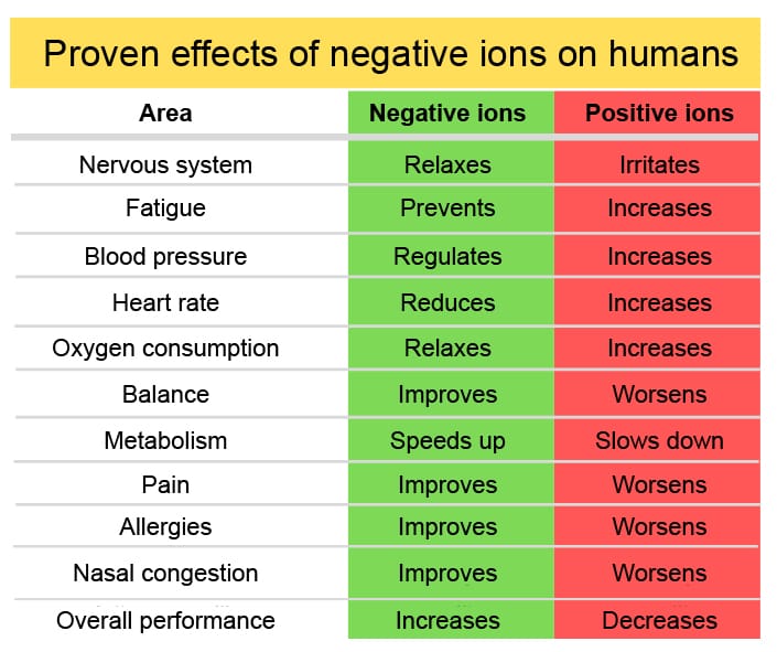 - Benefits of negative ions