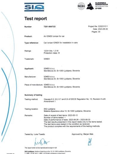 - Prenosni ionizator zraka IONEX za avtomobile (12V) in tovornjake (24V)