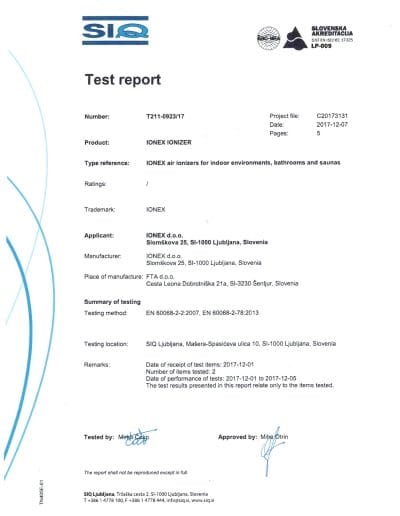 IONEX je edini proizvajalec ionizatorjev s certifikatom za savne, ki so odporni na visoke temperature in vlago, ter tudi edini proizvajalec avdio ionizatorjev za snemalne studije.